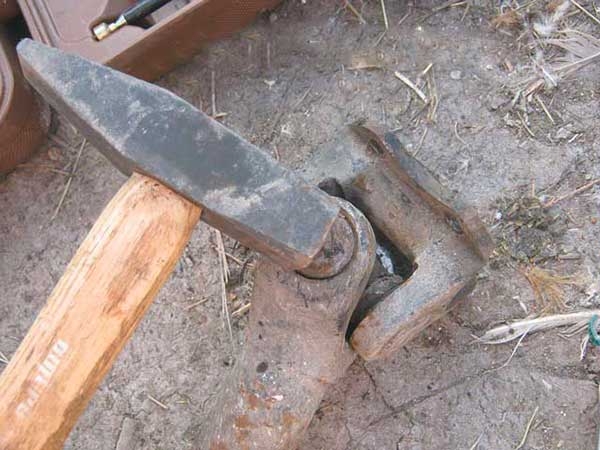 Далее с противоположной стороны (не с той, где мы снимали стопорное кольцо), бьем молотком по чашке, пока с другой стороны не вылетит чашка
